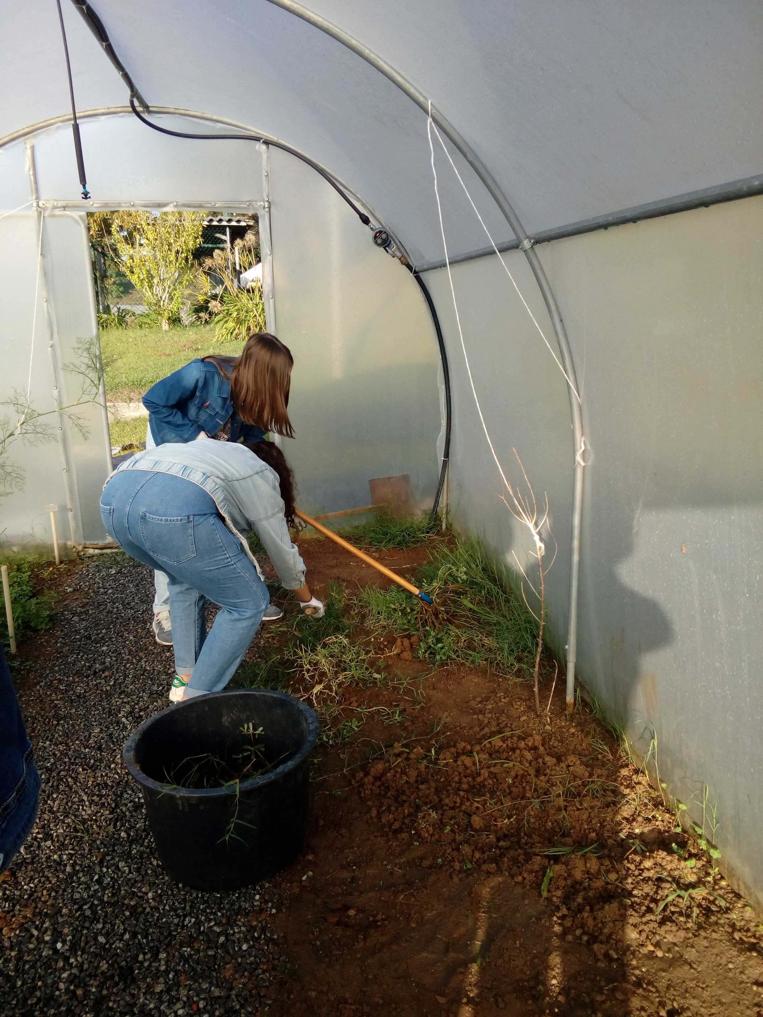Os trabalhos de limpeza do terreno na estufa tiveram início no mês de setembro de 2019 e a tarefa foi árdua, tendo levado mais de um mês a preparar o terreno na estufa.